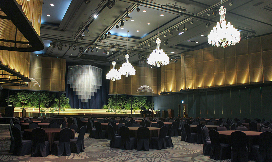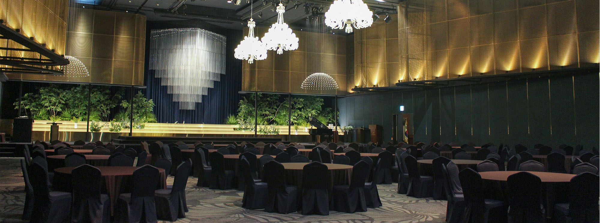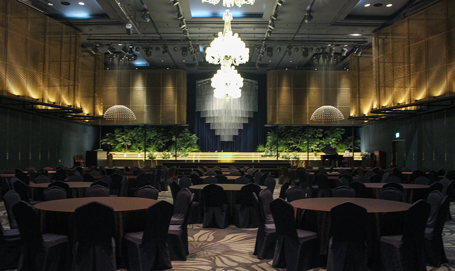 전국최대규모(2,695m²)의 크리스탈볼룸은 수백명부터 1천여명 이상의 국제행사와 같은 초대형 행사가 가능한 넓고 편리한 대연회장으로서 2개의 홀로 분할 가능하여 동시에 다양한 행사 개최가 가능한 최적의 장소입니다.